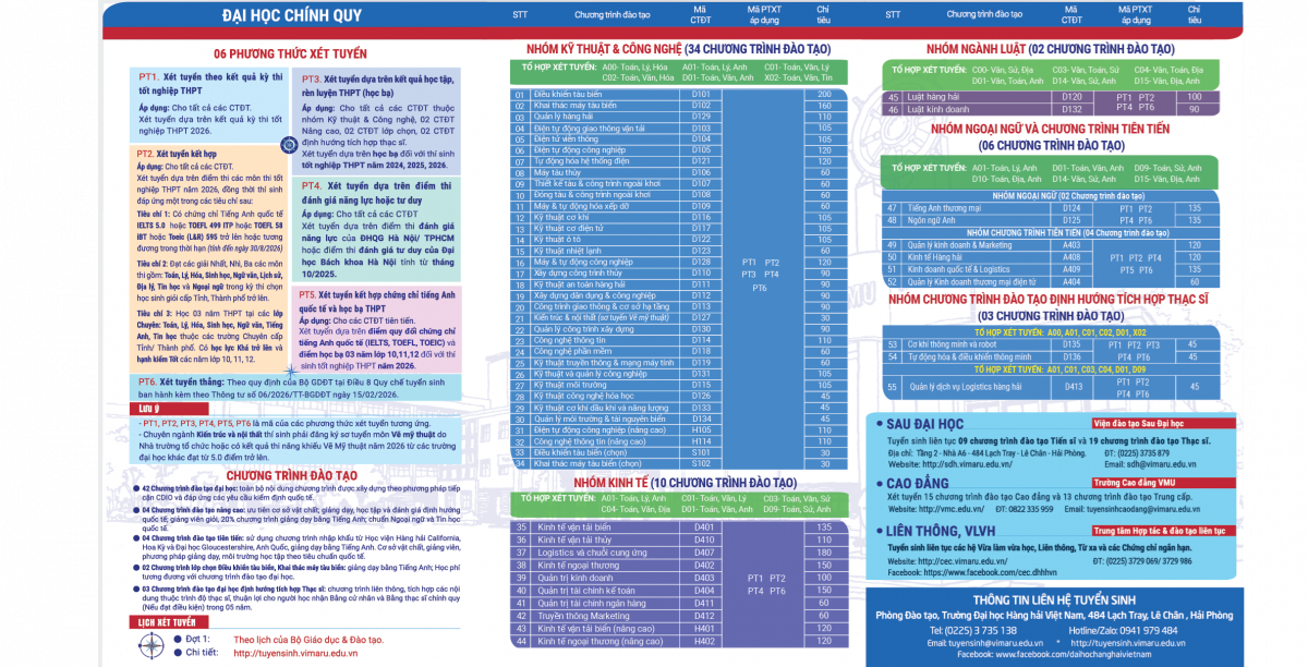 | 49 | A408 | Kinh tế Hàng hải | A01; D01; D09; D10; D14; D15 | |