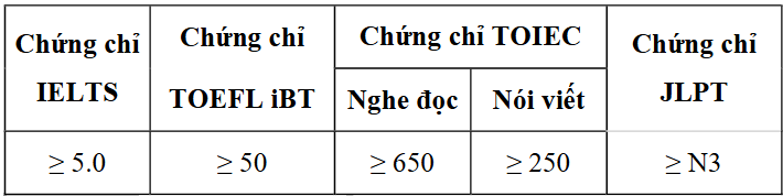 + Điều kiện ngoại ngữ đầu vào: