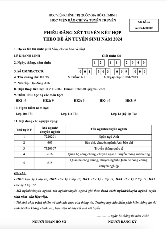 | 23 | 607_100 | Ngành Báo chí, chuyên ngành Báo mạng điện tử_100 | D01; D14; X78; X79 | |