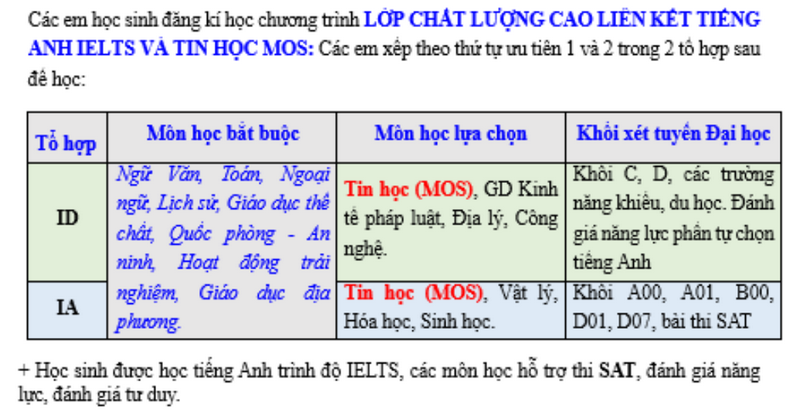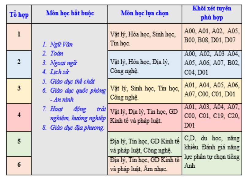 Các tổ hợp môn học lớp 10 được chia ra làm 2 nhóm như sau: