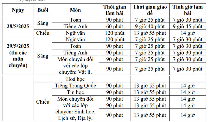 đối với trường công lập không chuyên tại mục a) nêu trên và 01 môn thi chuyên như sau: