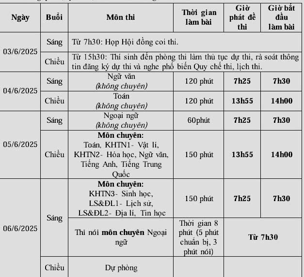 + Đối với các môn chuyên: 150 phút, phần thi nói môn ngoại ngữ: 3 phút.