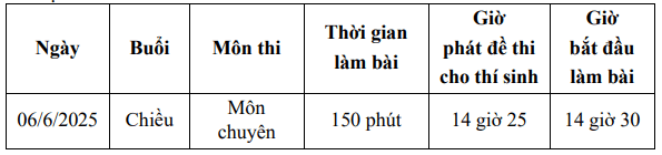 - Thời gian làm bài thi: Các bài thi môn chuyên là 150 phút.