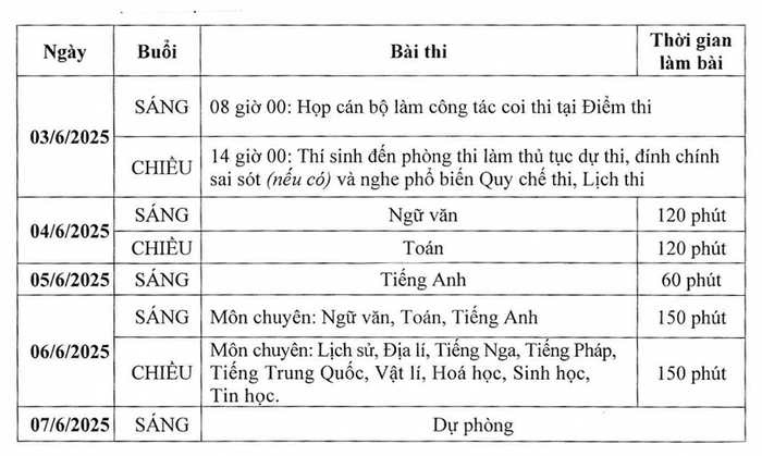 + Các môn thi không chuyên (thi cùng đề thi, ngày thi với các trường THPT đại trà): Môn Ngữ văn, Toán: 120 phút; môn Tiếng Anh: 60 phút.