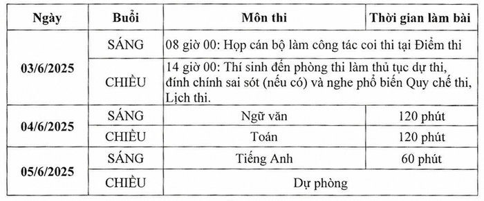 - Các bài thi môn Toán và Ngữ văn thi theo hình thức tự luận; thời gian làm bài là 120 phút/bài thi.